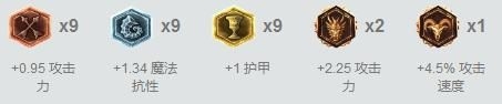 泰坦因为普攻附带控制,红色需要带攻速增加出手速度,需要频繁的使用E技能进行补刀消耗,精华选择法强也会增加线上能力,黄色和魔抗选择常规的护甲魔抗即可。
