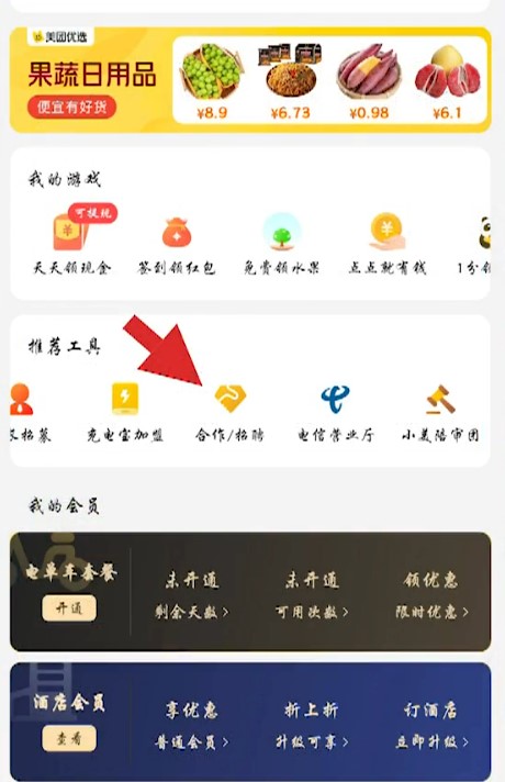 2、在个人主页中下拉找到推荐工具板块,然后点击合作/招聘选项。