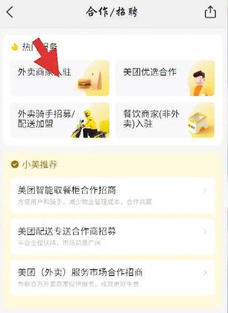 3、在打开的界面中点击外卖商家入驻选项。