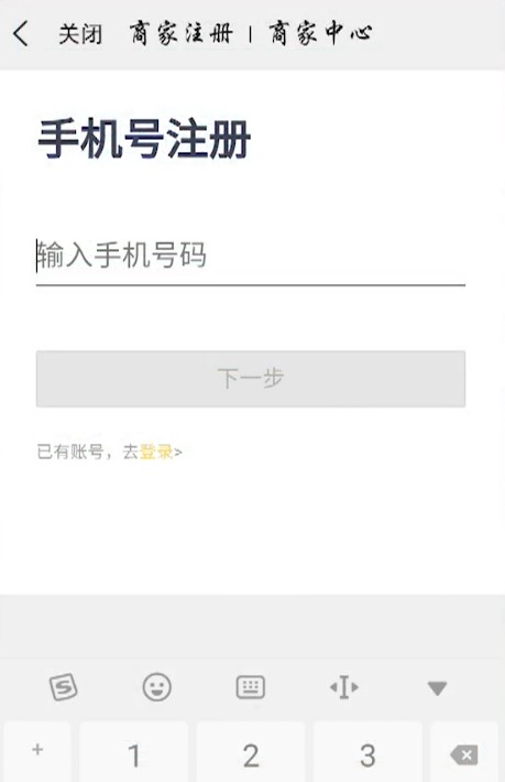 5、在商家注册界面中输入手机号进行注册。