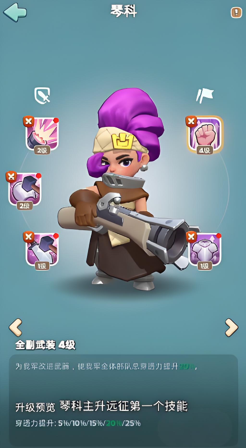 2、琴科需优先升满第一个核心技能,升级后全队总穿透力最高提升25%,同时增加资源产出与采集收益加快发展速度。
