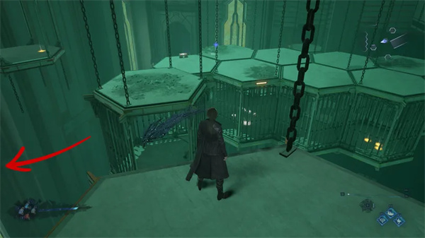 跳到那个笼子的顶部,然后走到一个打开的笼子;