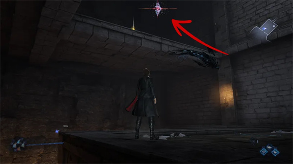 当你击败冰空之谜后与莉安娜一起到达下一个检查点时,转身跳到木制平台上。