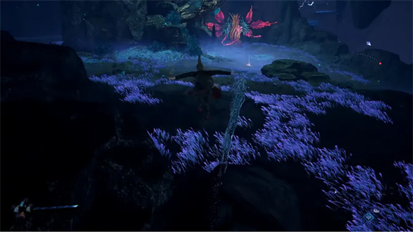 当你在击败扎娜后寻找封印的入口时,你会遇到两个怪物挡住了你的去路。在击败这些怪物以继续道路,你会跳到一个平台,你的右边有一朵盘旋的花。