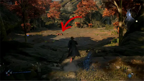 当你穿过机械桥后与莉安娜一起到达下一个检查站时,有一个很大的空地,地下有一块燃烧的岩石。