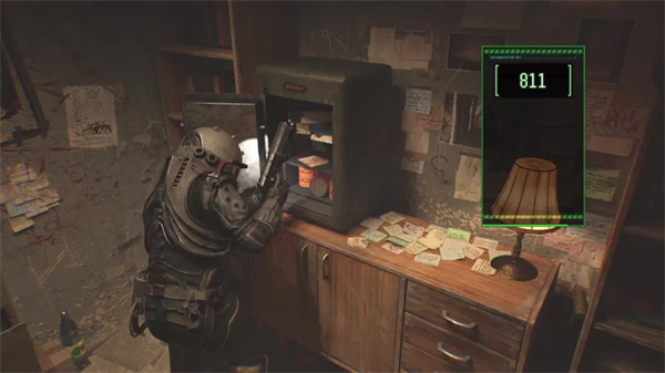 隔壁房间是一间办公室,里面有一个上锁的保险箱。抓住角落里的奇怪纸条,然后是旁边的“新的开始”纸条。你身后角落的桌子上还有一张“他们的时代来了”纸条。