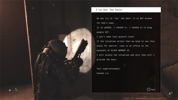 前往房间的左后角,发现被锁住的房间 25。使用断线钳进入内部并获取一些化学品和风扇加热器进行出售。然后,前往锅炉房寻找一些用品和一些重要注意事项。阅读 Disorder!、Number 94 和 The Ultimatum notes,了解有关您需要的钥匙的更多详细信息。