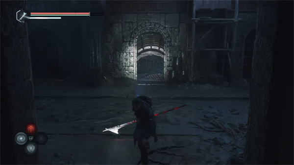 从那里走下东北楼梯,从栏杆的缝隙中下降。直接穿过自动落在您身后的大门(当您绕回时,您可以从入口侧重新打开)。继续前进,直到到达一个充满敌人的十字路口。清除它们并右转。