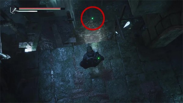 沿着走廊直行,当你重新进入水车室时,下降到壁架附近的平台上。