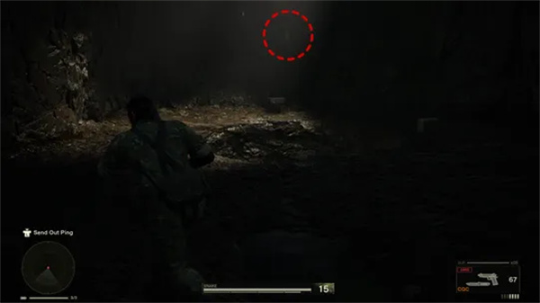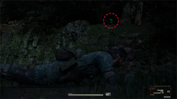 沿着路径走,直到触发一个简短的场景,蛇看到有东西从头顶飞过。然后继续沿着这里的小路走,直到到达一个开口。前往左边的洞穴,为所有武器捡起弹药。不过要小心,因为该地区有一些地雷。如果你没有第一次抓住它,你也可以在这个区域找到地雷探测器。然后,向北行驶以退出该区域。