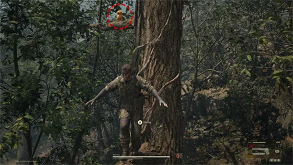 在该区域的左侧,您会发现一棵可攀爬的树。爬上它并做一个 180 度,找到坐在左侧树枝上的 GA-KO。