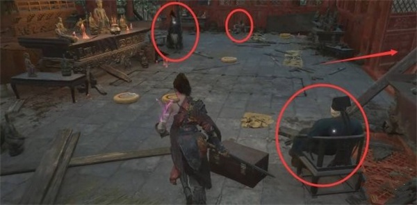 探索真武观主殿,最高层为三清殿。在下楼时会见到黄剑娥,她是为师门复仇而来。