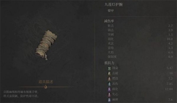 九莲灯护腕:以粗麻绳和厚麻布缠裹手臂,样式虽简陋,防护性却不错。