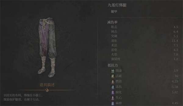 九莲灯绑腿:以结实的布料,绑缠在小腿上。既能保护腿部,也便于行动。