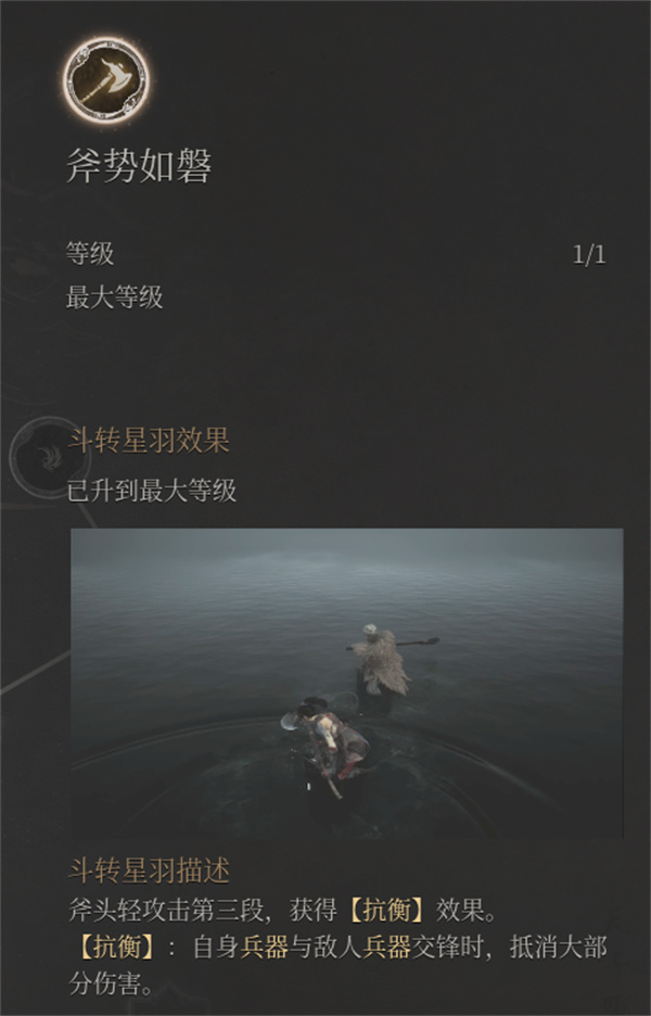 再配合上搭配神技斧势如磐,点出来之后,就再也不用担心被人打断我们的轻击,因为每下轻击都能出手自带抗衡效果,抗衡的时候不仅提供近乎免伤的减伤效果,同时还能续上我们的羽毛。