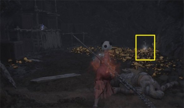 2、沿着唯一的路走到底部,可以看到一个篝火,进入篝火旁边的山洞。
