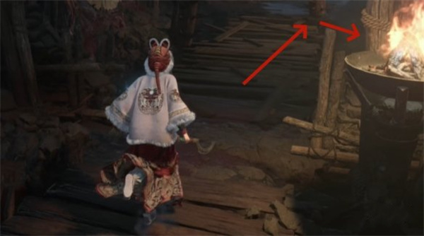 2、沿着木板一直走,在尽头跳到下面的木板上,然后往上走到尖刺陷阱里面左拐,最后右拐。