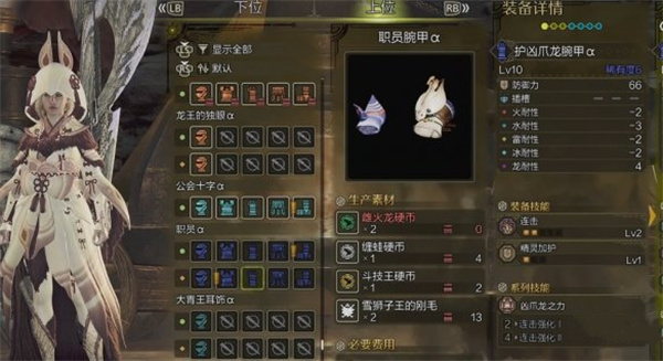 3、完成完成雌火龙+蟾蛙组合狩猎任务,拿到对应的雌火龙、缠蛙硬币才可以制作职员腕甲。