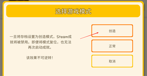 一旦将存档设置为创造模式,Steam成就将被禁用。即便将模式复位,也无法再次启动成就。