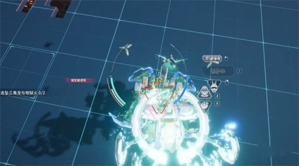 他吃了三个挡板之后会开始跑,此时追着他跑,停在他头上,最好锁定三角龙,从上面进行输出。