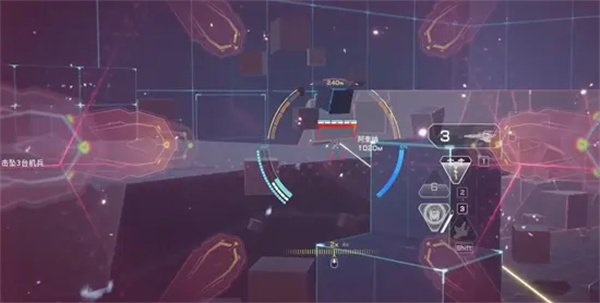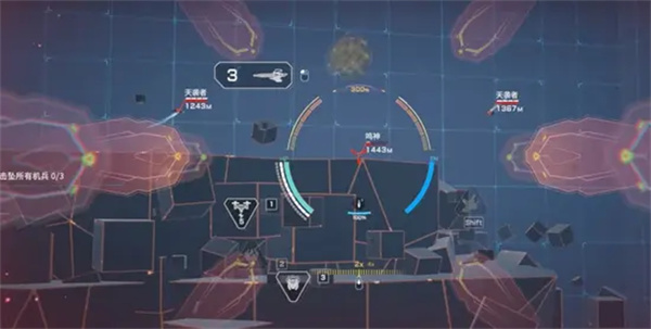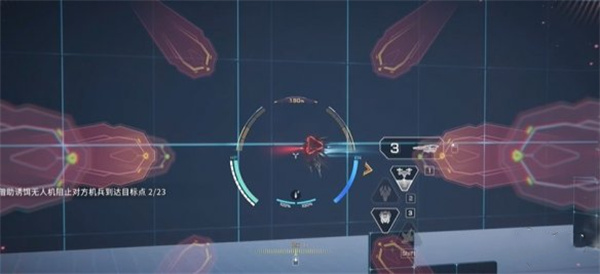 向左上方飞行,注意左侧无人机,使用二技能上升。