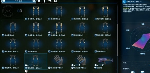 2、游戏中一共可以获得三种不同类型的外骨骼。