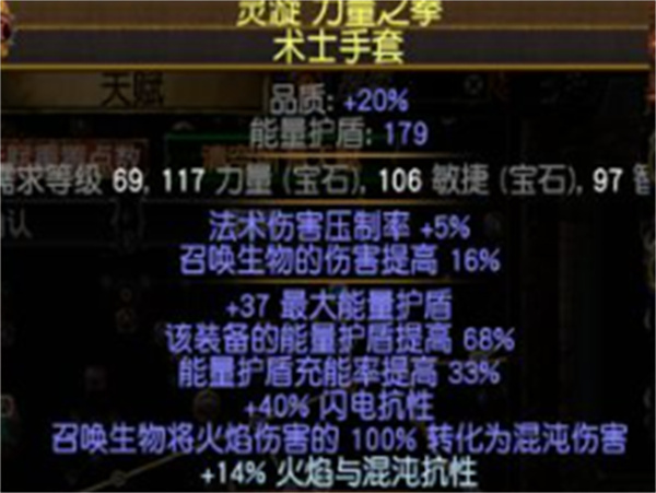 手套一定要100%召唤火焰转混沌伤害,才能把“破坏之火屑地雷的”2000多火伤转成混沌伤害。