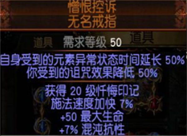 憎恨控诉无名戒指,获得忏悔印记,印记使你标记的敌人被击中时召唤3个幽灵,1秒中触发1次。