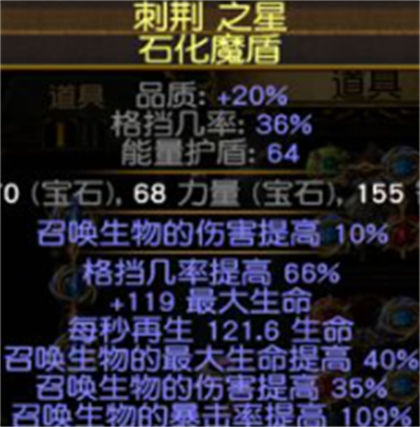 武器召唤伤害和召唤攻击速/度,盾牌格挡工艺50%以上。