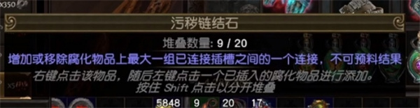 用工艺台弄出六孔以后也可以直接用工艺台点出5连,用瓦尔宝珠腐化装备,然后用污秽链接石点装备。