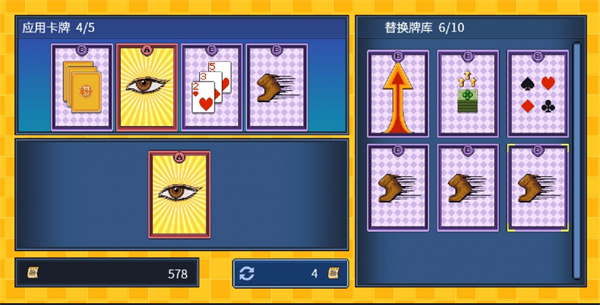 这时将抓着的牌放回牌库中则大概率成功。若结果有其他牌自动飞到了手牌空位,则需要替换一下手牌并使其不满,然后再次尝试。将牌放回牌库时与其他牌重叠,出现交换选项时放手则必定成功。