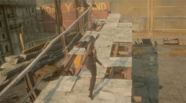 这个任务中的斜坡谜题让人费解——但并不是你想象中的原因。你会看到一个跷跷板通向一根金属杆,金属杆面对着相邻的建筑。你的目标是稳定这个跷跷板,使其像一座坡道一样工作,帮助你成功跳到金属杆上。幸运的是,这部分相对简单。