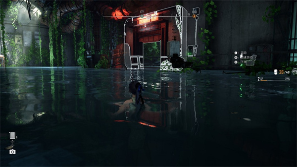 进入水下后,游到中心区域,浮出水面后往右手大门走,