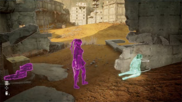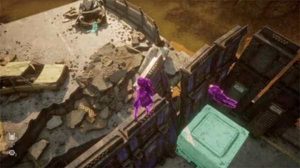 02、首先用废墟底部的大方块垫脚,跳上绿05号营地所在的高层平台,然后攀爬营地旁的墙壁跳到另一个废墟的二层,调查这里的遗体获得[机体核心]。另外下方还有一个箱子,打开可获得各类弹药补给。