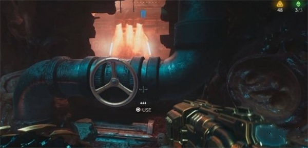 洞内靠近管道的阀门,与其互动,关闭喷火,关闭喷火后,玩家就可以出洞口往前走,进入火门的背后区域,准备迎战敌人。