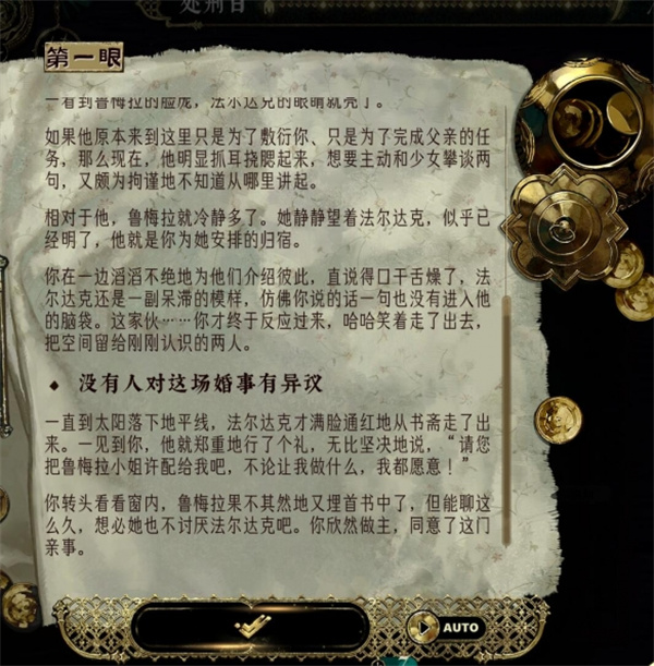 3、然后又会有一个感叹号,请主角帮忙介绍对象,先是「证婚人」事件中选择人选——鲁梅拉,然后会触发事件「第一眼」,这里质子、鲁梅拉、主角都必须到场,还需要一个首饰、18金币。
