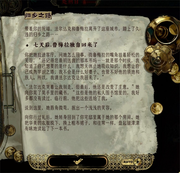 6、如果上一事件空白位放了另一个长辈,法尔达克上朝后,苏丹允许请求,小两口就能回乡了,时长七回合。