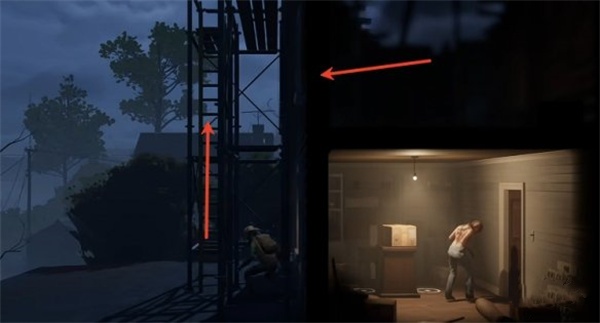 6、出来之后从窗户跳下来,从旁边的梯子爬上去。