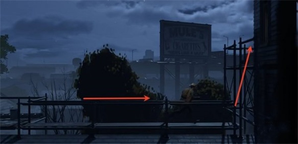 7、一直跑到尽头,继续爬上眼前的梯子。