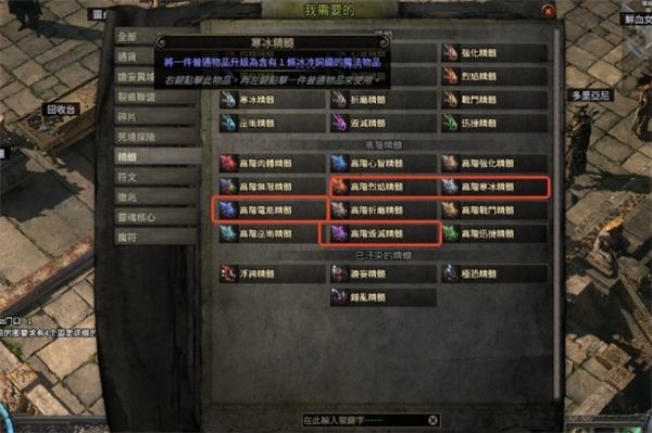 3、之后用增幅石点一个词条,之后用高级火焰、闪电、冰霜、混沌精华点出抗性。(混沌应该是必出抗性的)