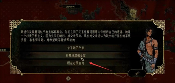 ①最开始面对【夏玛】的请求时选择【顾左右而言他】触发【孤注一掷】事件;