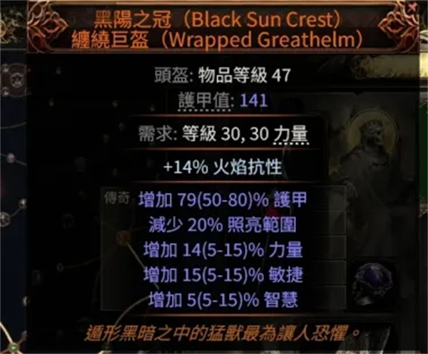 头盔词缀:暗金黑阳之冠(力量百分比尽量满roll)