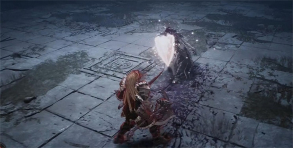 4、这里盾牌发光后看boss的动作,如果她是在空中选择则是把盾牌扔出去;