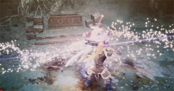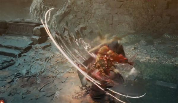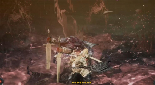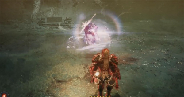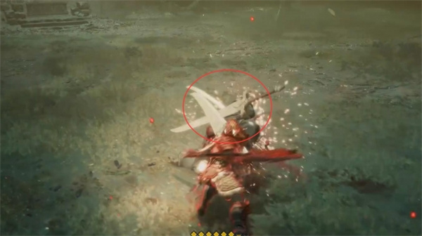2、起身后再砍一刀后跳,刀发光向前突刺,弹反打就行;