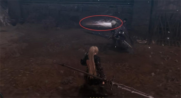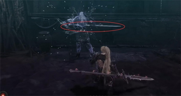 4、屏幕出现白光时boss向前挥砍两次,并与玩家拉开距离,冲过来连续攻击八次,这里连续弹反攻击;