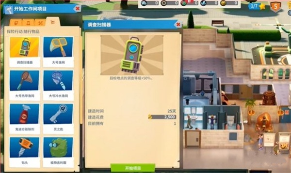 首先我们需要在工作台的探险行动页面,花费2500金币制作调查扫描器。