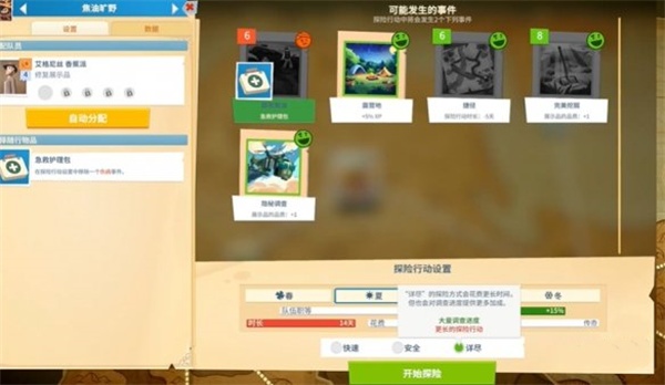 探索等级满级后,我们选择想要探索的关卡,并在探险行动设置中选择“详尽”模式。