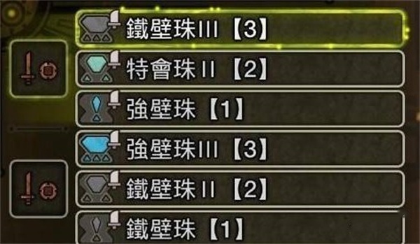 铁壁珠Ⅲ(3)、特会珠Ⅱ(2)、强壁珠(1)、强壁珠Ⅲ(3)、铁壁珠Ⅱ(2)、铁壁珠(1)