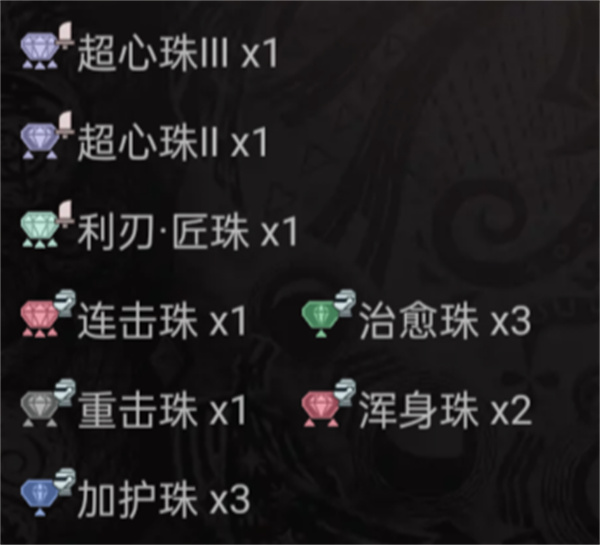解析:武器珠子选择5级的超会心,和利刃匠,能够造成更高的暴击伤害并且提升了锋利度,并且攻击时会有50%的概率不会消耗锋利度。