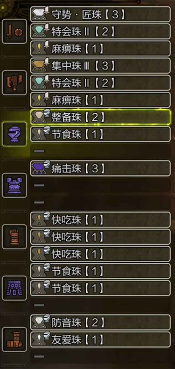 武器:守势·匠珠【3】、特会珠II【2】、麻痹珠III【3】